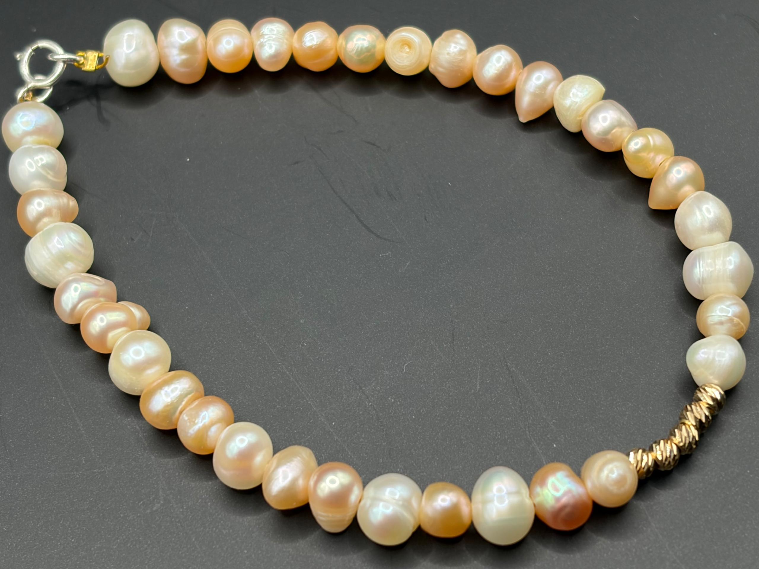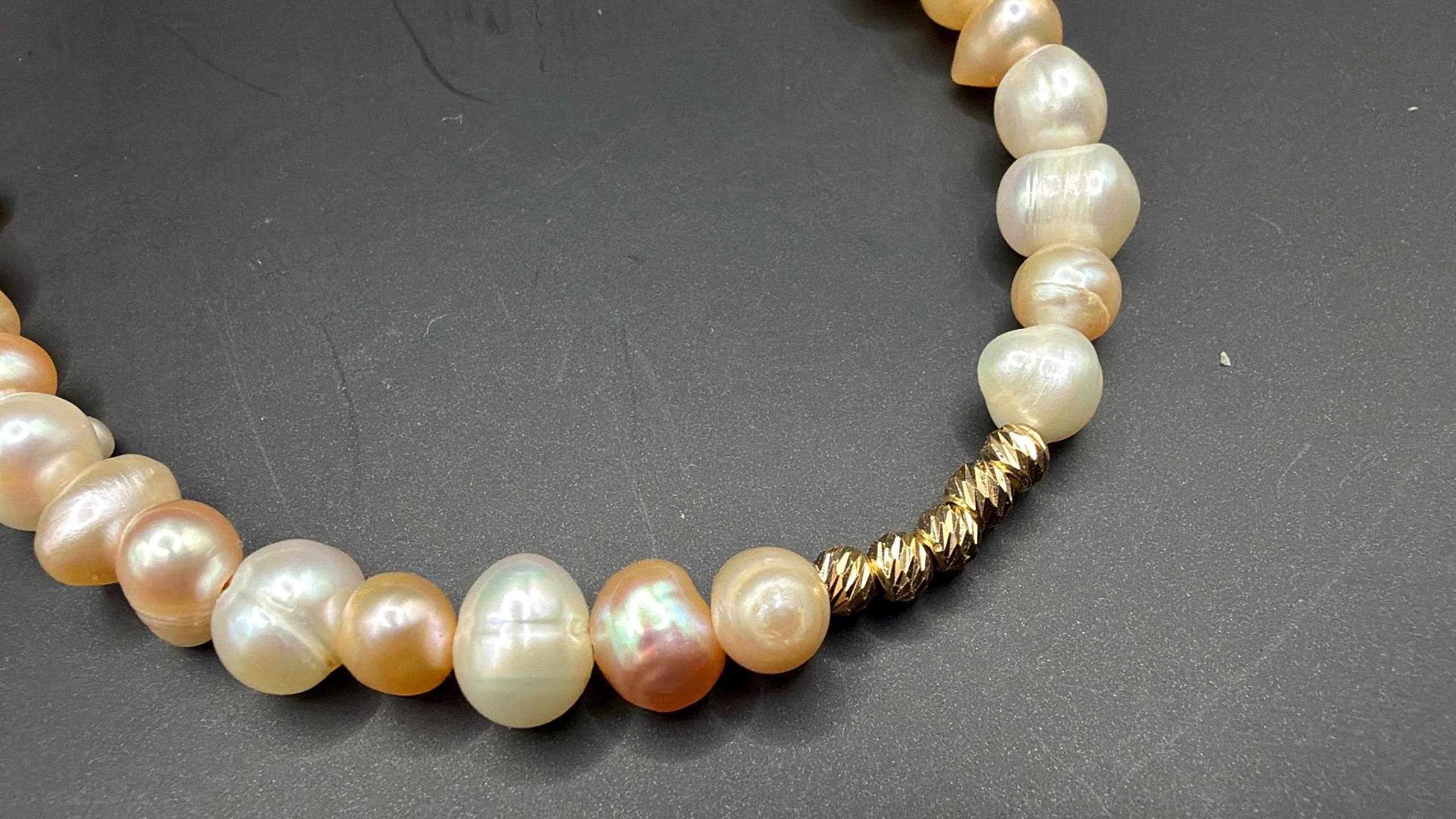 دستبند مروارید با گوی های طلا