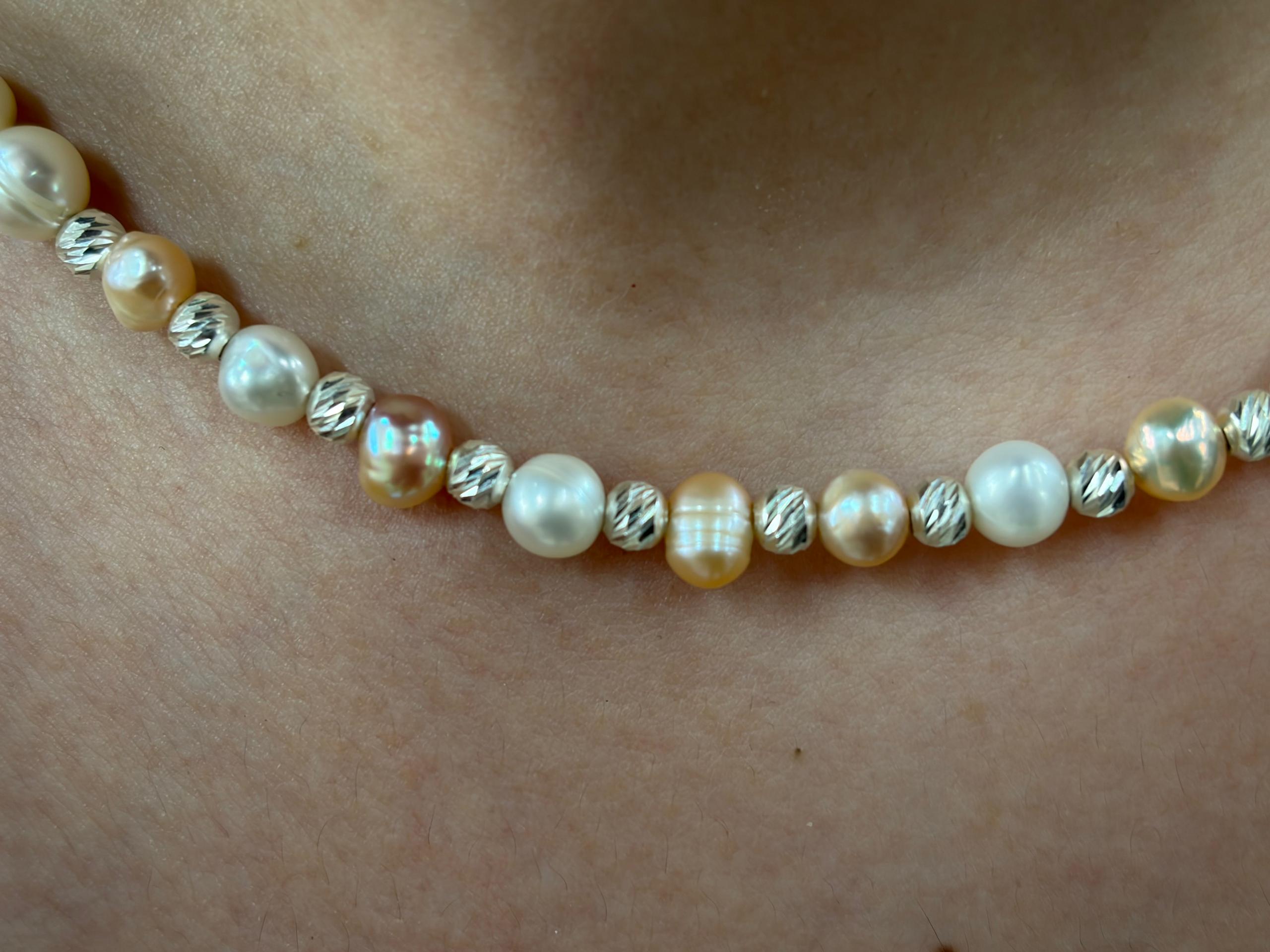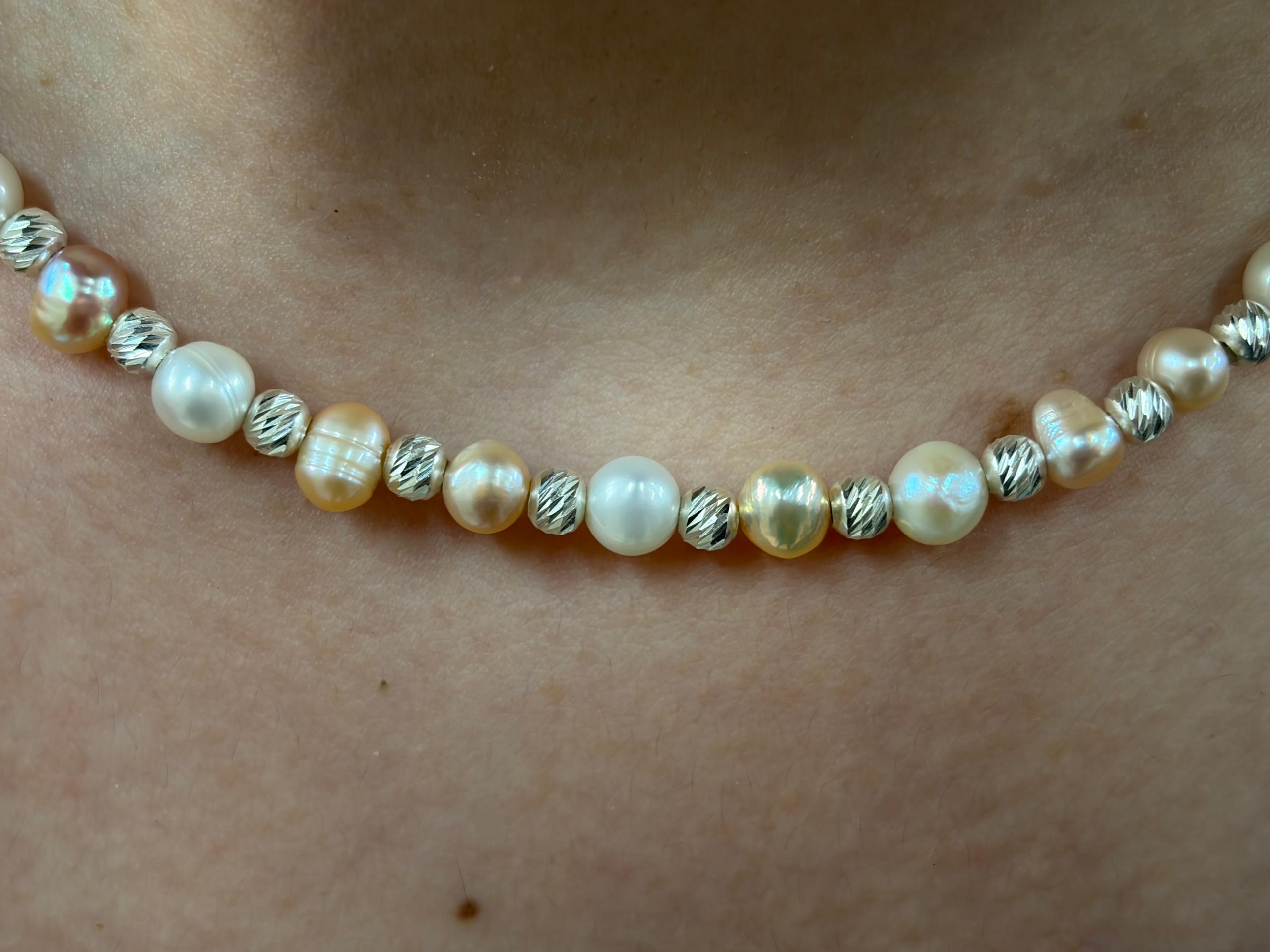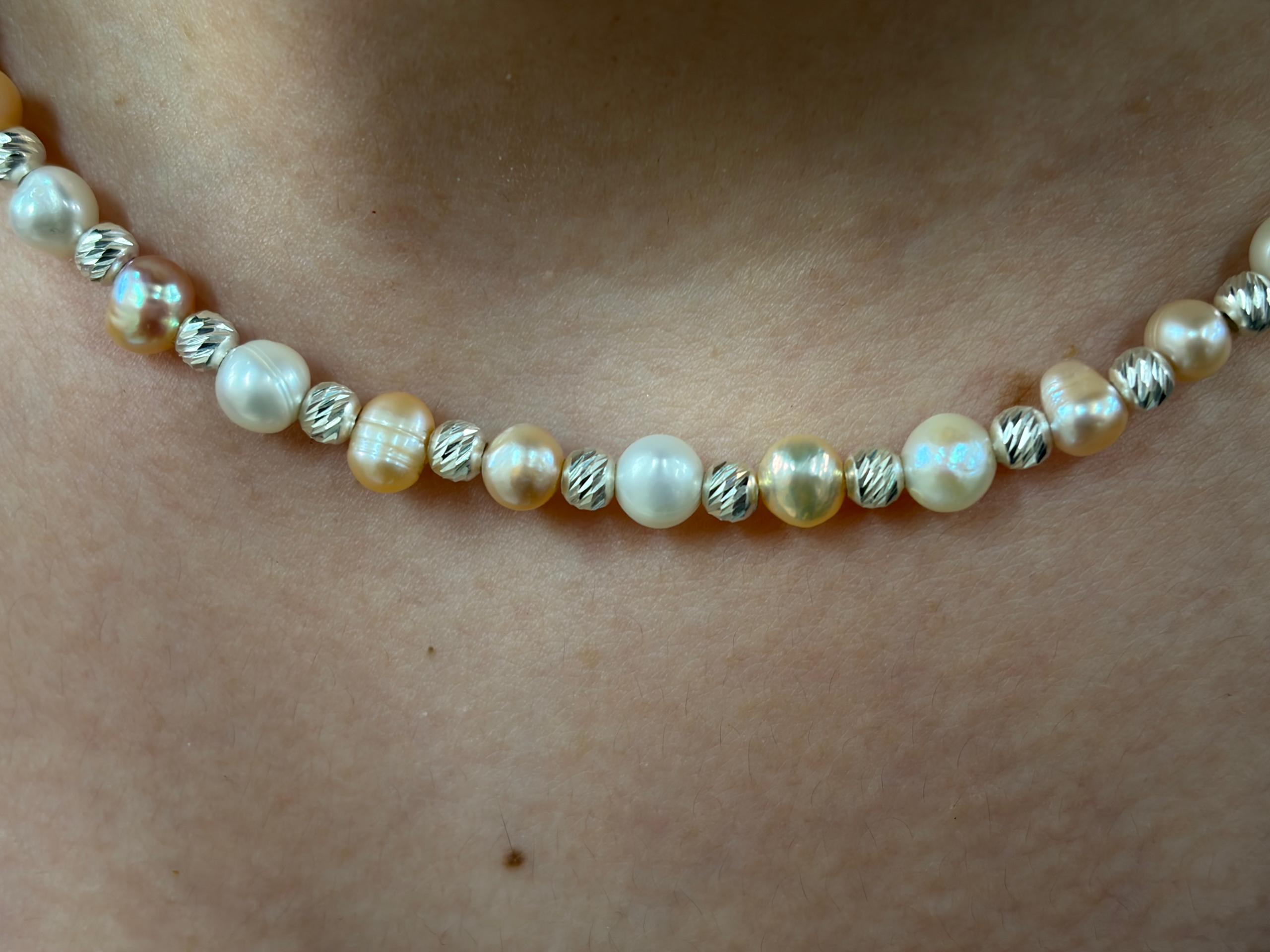 گردنبند مروارید با گوی های نقره